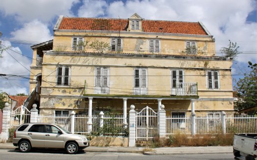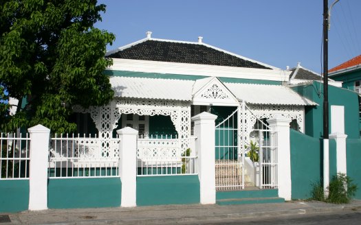 Name of property: Kas di Kanchi Characteristics: Detached one-storey corner structure. Two parallel hipped roofs
