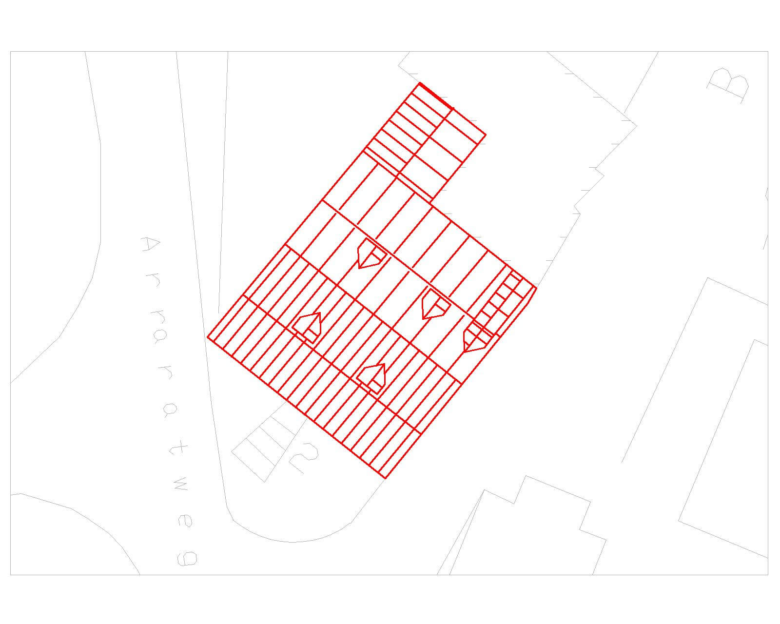 “Vrijstaand hoekpand met de nok in oost-westrichting, omsloten door de Arraratweg en de Bergstraat.