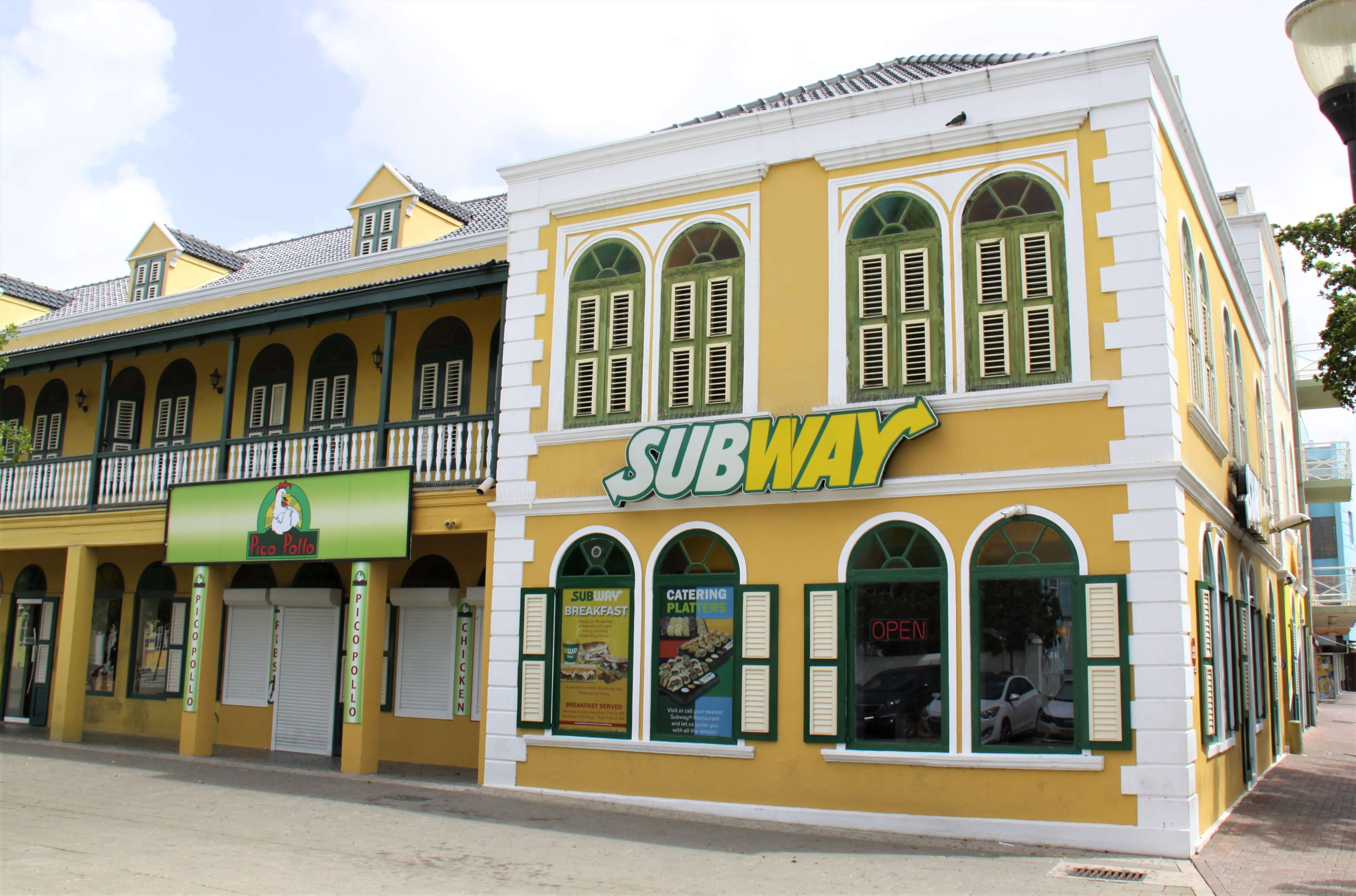 Op de begane grond geheel links een enkelvoudige paneeldeur met houten shutters, het aangrenzende venster eveneens met houten shutterramen. Op de verdieping over stijlen, die – in steen – tot op de begane grond doorlopen. Op de verdieping tussen de houten stijlen balustrade van uitgezaagde houten spijlen. Na het terugliggend gedeelte van de gevel weer een naar voren springend deel, met de nok evenwijdig aan het Brionplein. Twee bouwlagen met kap.