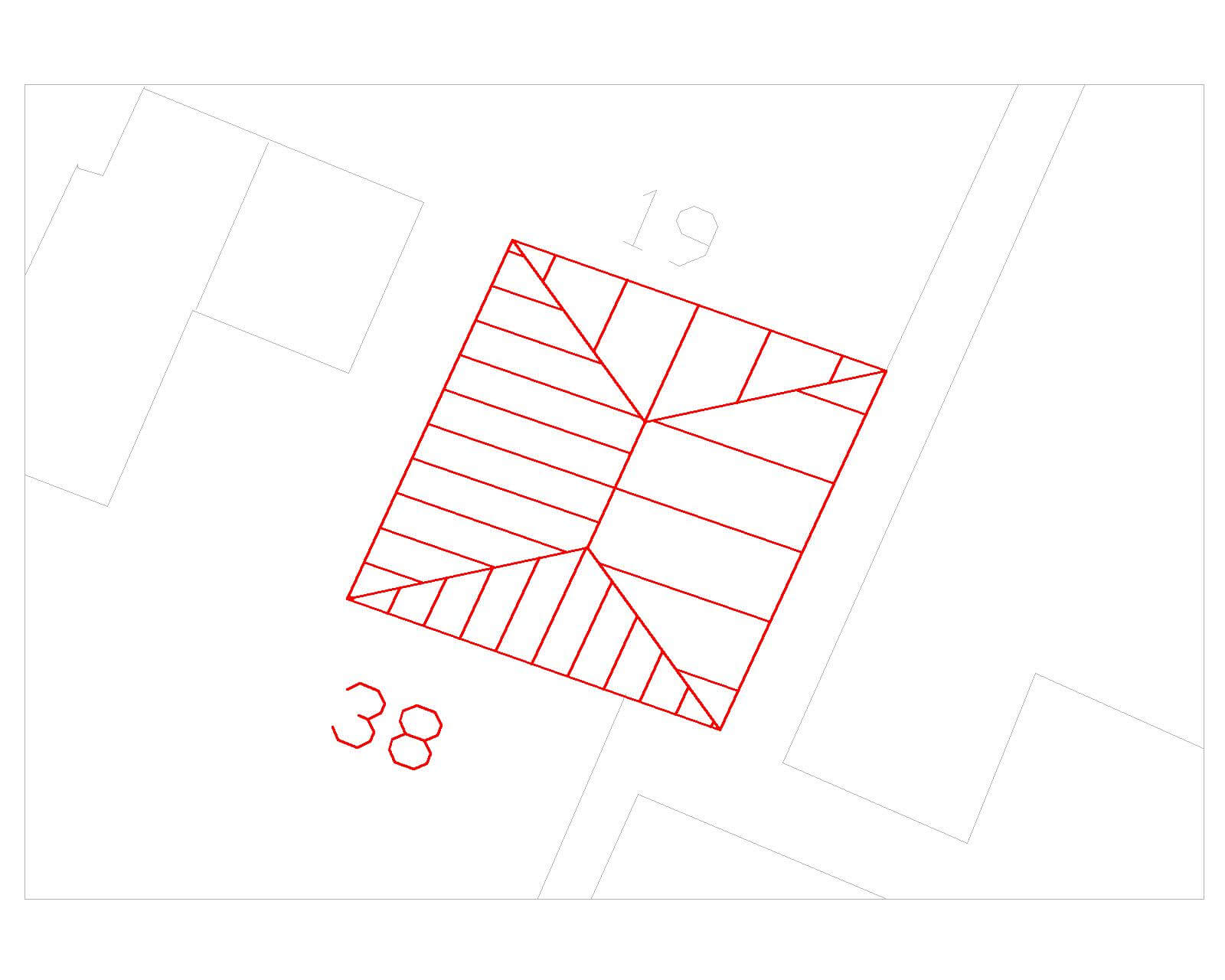 Detached one-storey structure in backyard of Hoogstraat 40. Hipped roof with cement hips and ridge with finials. Front façade: centrally positioned door flanked by tall windows with heavy profiled moulding.