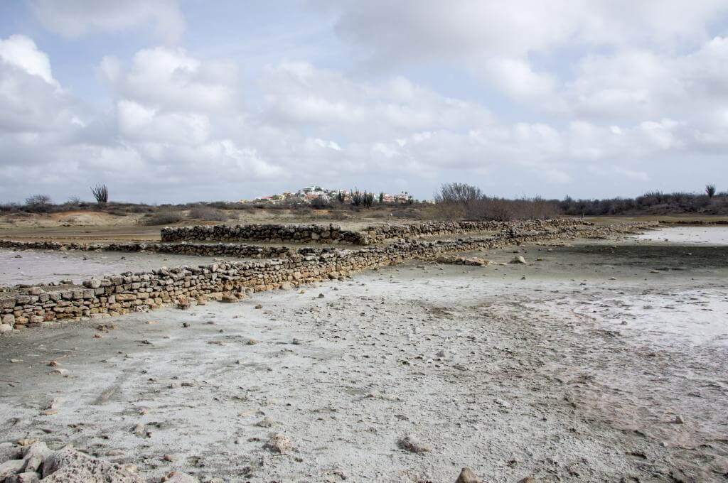 In de lagune van Jan Thiel bevinden zich restanten van zoutpannen bestaande uit dammen van gestapelde stenen.