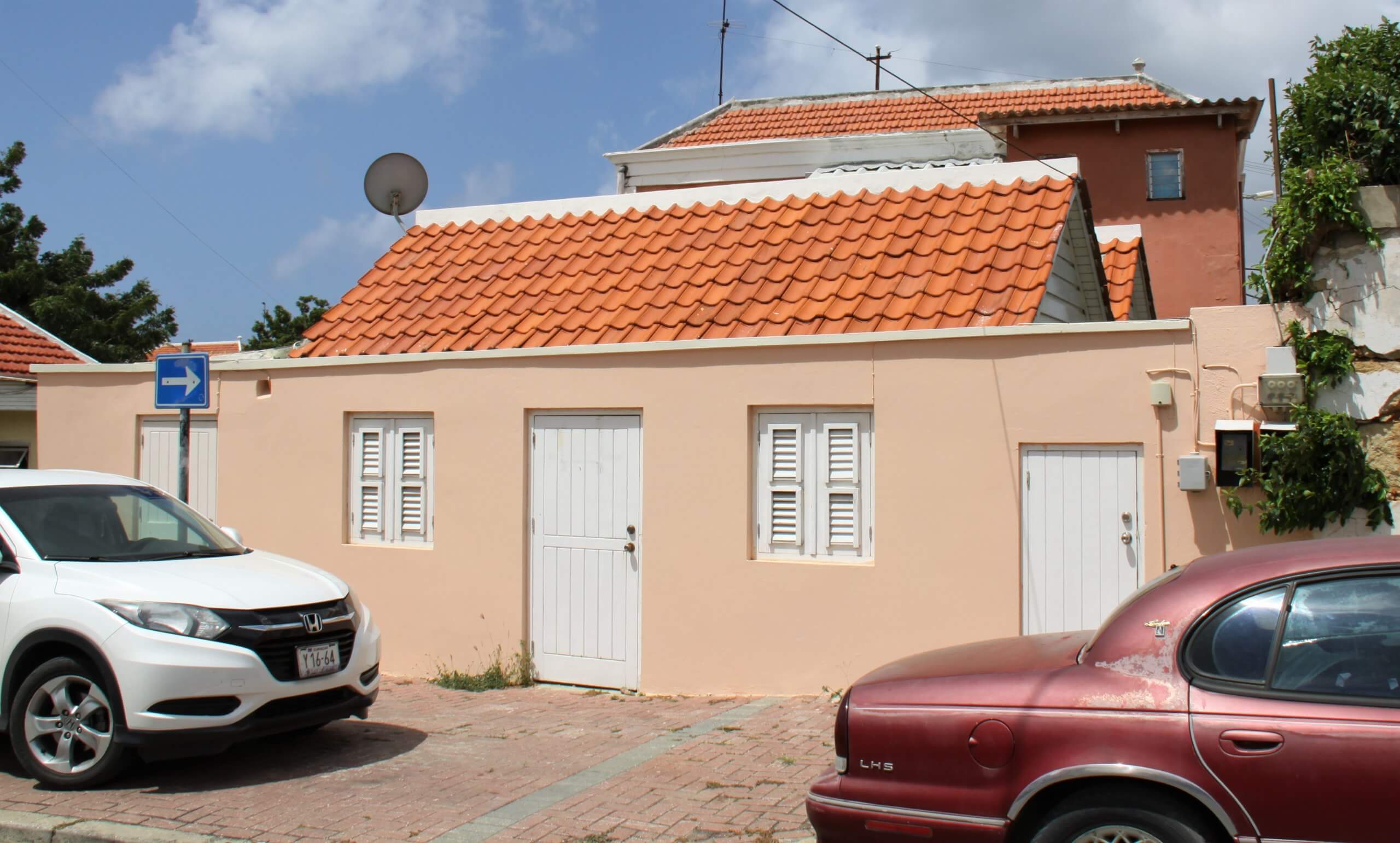 Small detached one-storey structure. Part of the ribbon development along Kortijnweg. Wooden dwelling with stone- built front façade. Two gable roofs parallel to street, gables finished with boarding. Side-gate with access to backyard.