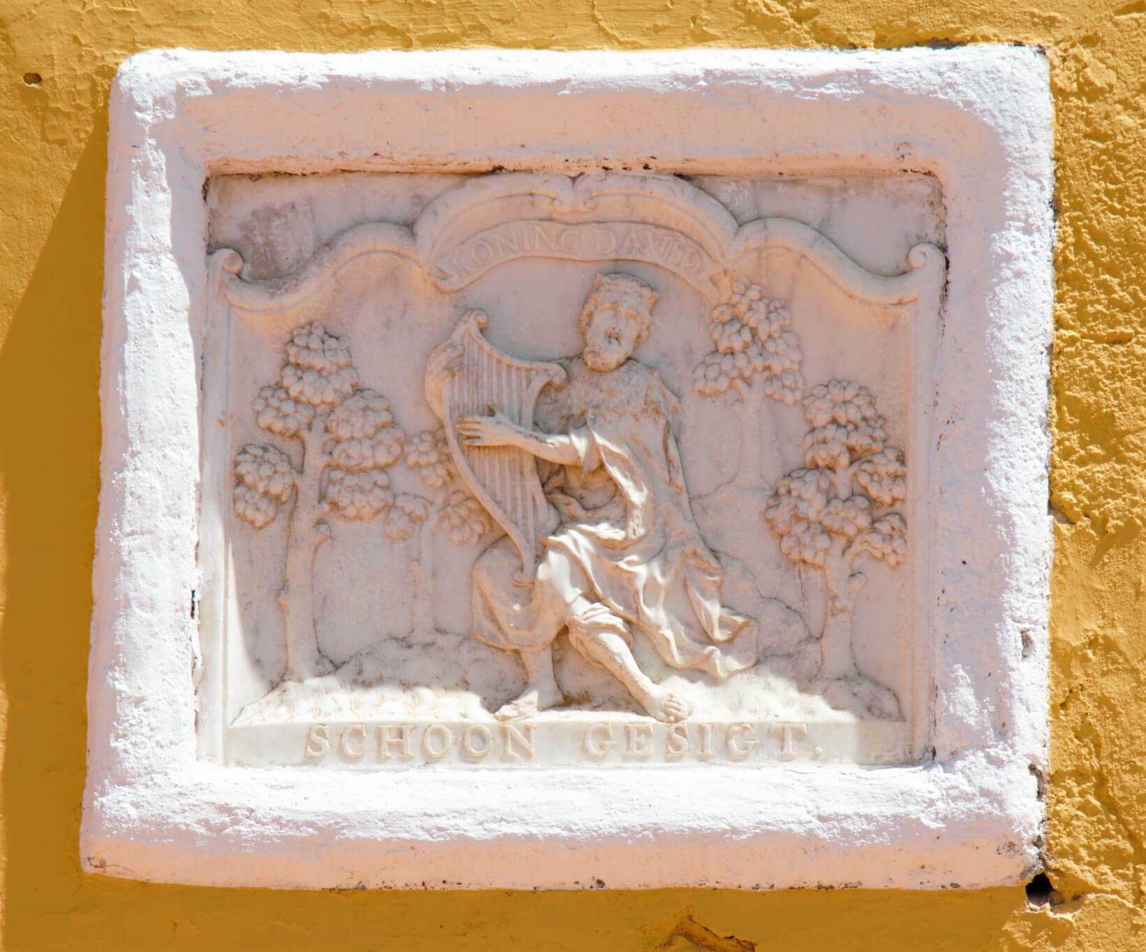 De voorgevel (westgevel) maakt boven de voorgalerij een flauw gebogen gevelvlak met de breedte van de kern. Dit vlak benadert een halve cirkel en heeft een palmetbekroning waaronder de geprofileerde deklijst als een voluut omkrult, een vorm die op de benedeneinden driemaal herhaald wordt. Onder de bekroning is een halfrond ventilatiegat met geprofileerde boogvormige waterlijst aangebracht en een 18e-eeuwse blank marmeren gevelsteen, die in het rechthoekig vlak in hoogreliëf de harpspelende Koning David afbeeldt, met het onderschrift “SCHOON GESIGT”. In de gevel zijn drie deuren als aangegeven geplaatst, waarboven een band over gevelbreedte loopt. Over gevelbreedte ligt ook het terras dat overdekt is door het lessenaardak. Het dak wordt gedragen door vier ronde kolommen op vierhoekige sokkels en aan weerszijden van de centrale toegang door achthoekige kolommen. Op de hoeken zijn aquaducten aangebracht. De noordelijke zijgevel heeft volgens drie assen een centrale deur en aan weerszijden een venster. Langs de gevel ligt een verharde strook die bestraat is met gele IJsselsteentjes (ca. 14,5 x 7 x 3,5 cm) en met tegen de gevel een putje. De zuidelijke zijgevel heeft twee deuren en op de zuidoostelijke hoek een aanbouw met badgelegenheid. De aanbouw heeft een rechthoekige plattegrond, is opgetrokken in steen over een enkele bouwlaag, heeft een lessenaardak waarvan de hoge zijde aansluit op het hoofdgebouw. Op de korte zijden van de aanbouw worden de geprofileerde gootlijsten van het hoofdgebouw voortgezet. Aan de zuidzijde zijn drie nagenoeg vierkante openingen. Tegen de oostzijde van de aanbouw staat een stenen waterreservoir, dat 5/6 deel van de hoogte van de muur beslaat.