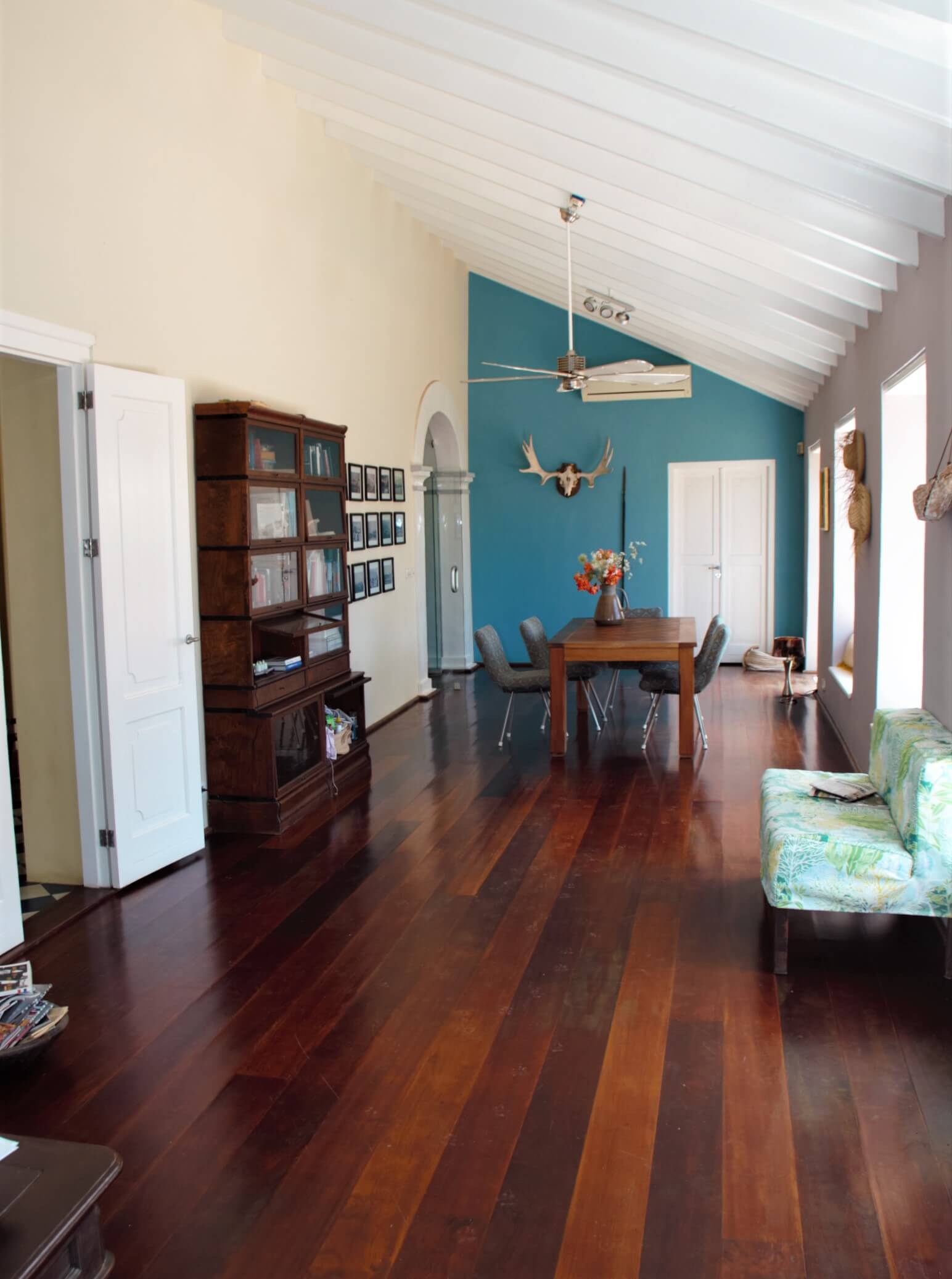 Opvallend is dat de westmuur van de sala als hoofdmuur tot in de nok is opgetrokken.
