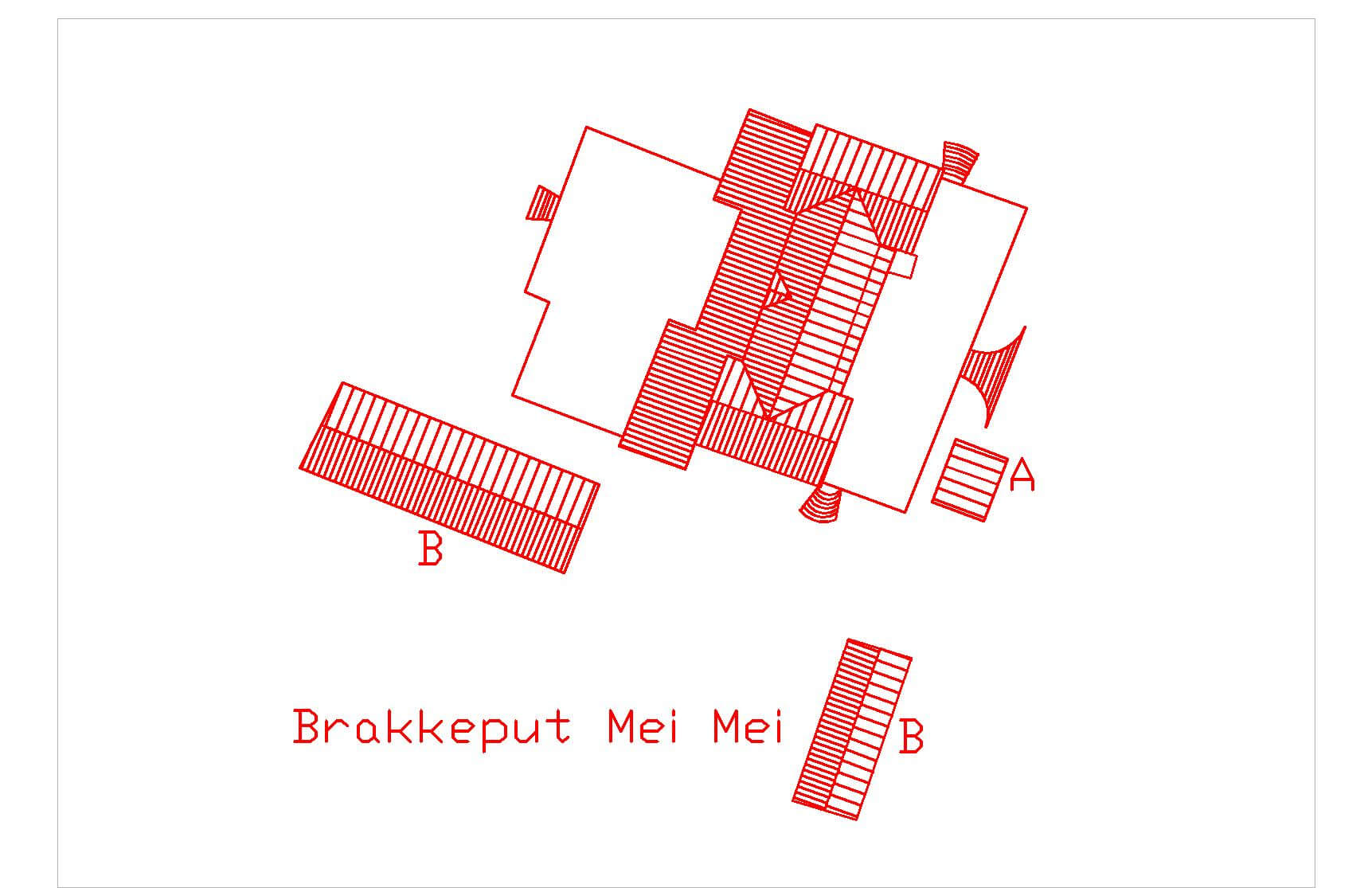 - Nieuwe elementen: achter de gevels zijn nieuwe betongevels opgetrokken; op het oostelijke dakschild van de kern staat een recente strook dakkapellen; golfplaatbedekkingen.