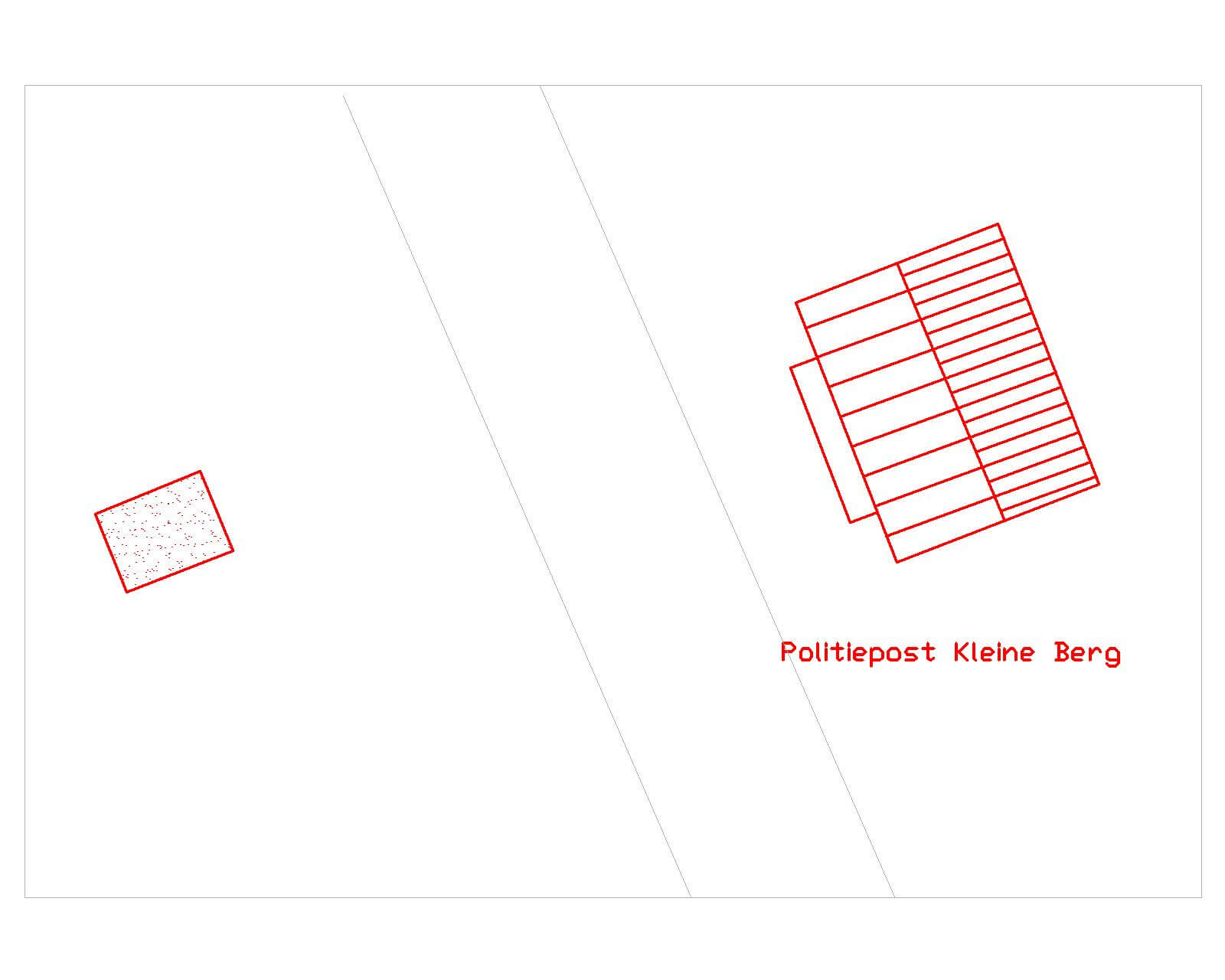 Aan de overzijde van de weg is een politiecel. Dit gebouwtje is opgetrokken in beton op een rechthoekige plattegrond op een uitkragende onderbouw. Het pand is afgedekt met een plat betonnen dak. Het dak heeft een overstek.