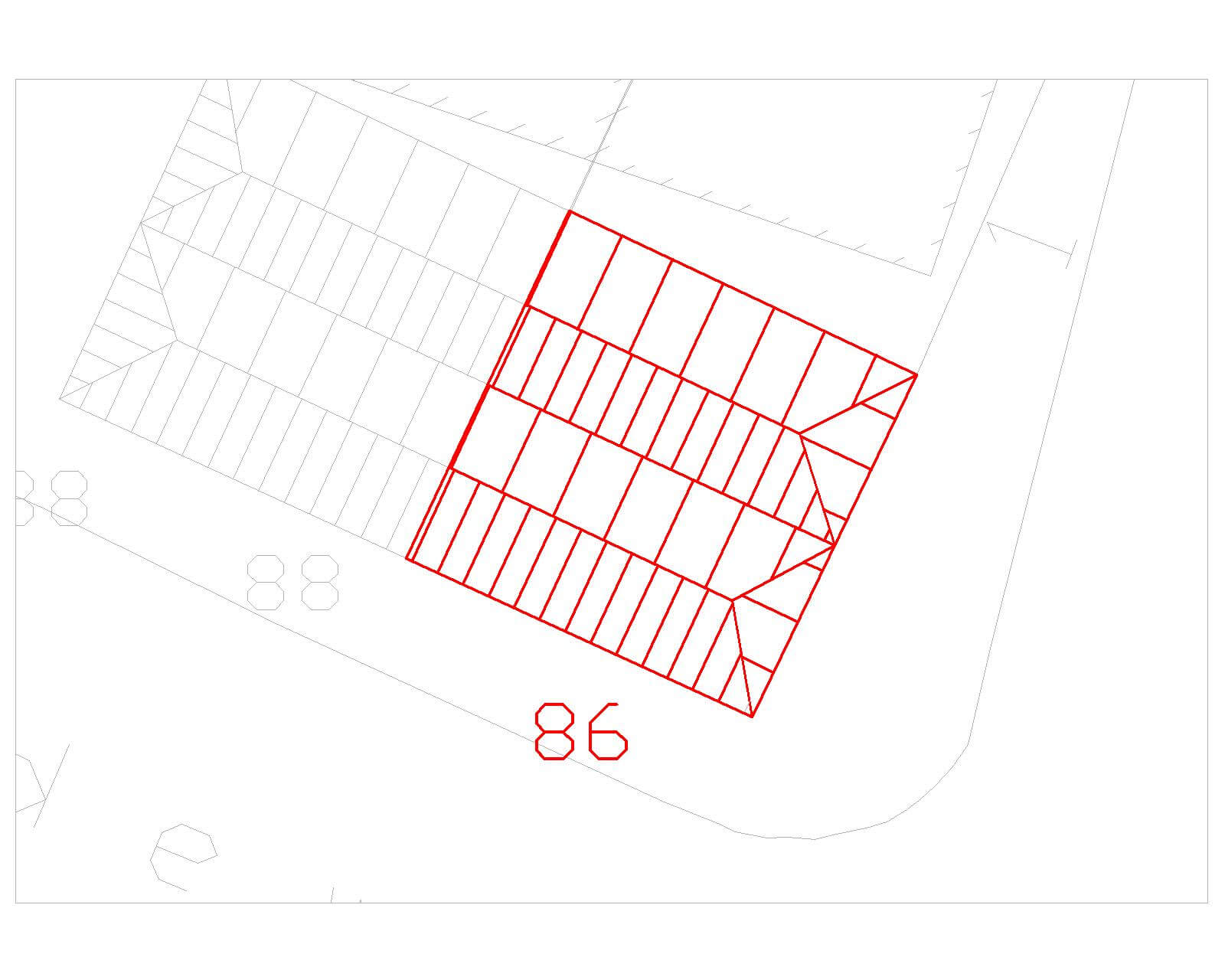 De achtergevel (noordgevel) heeft op de verdieping openingen volgens drie assen (4). Op de hoek en scheiding met nr. 88 een liseen.