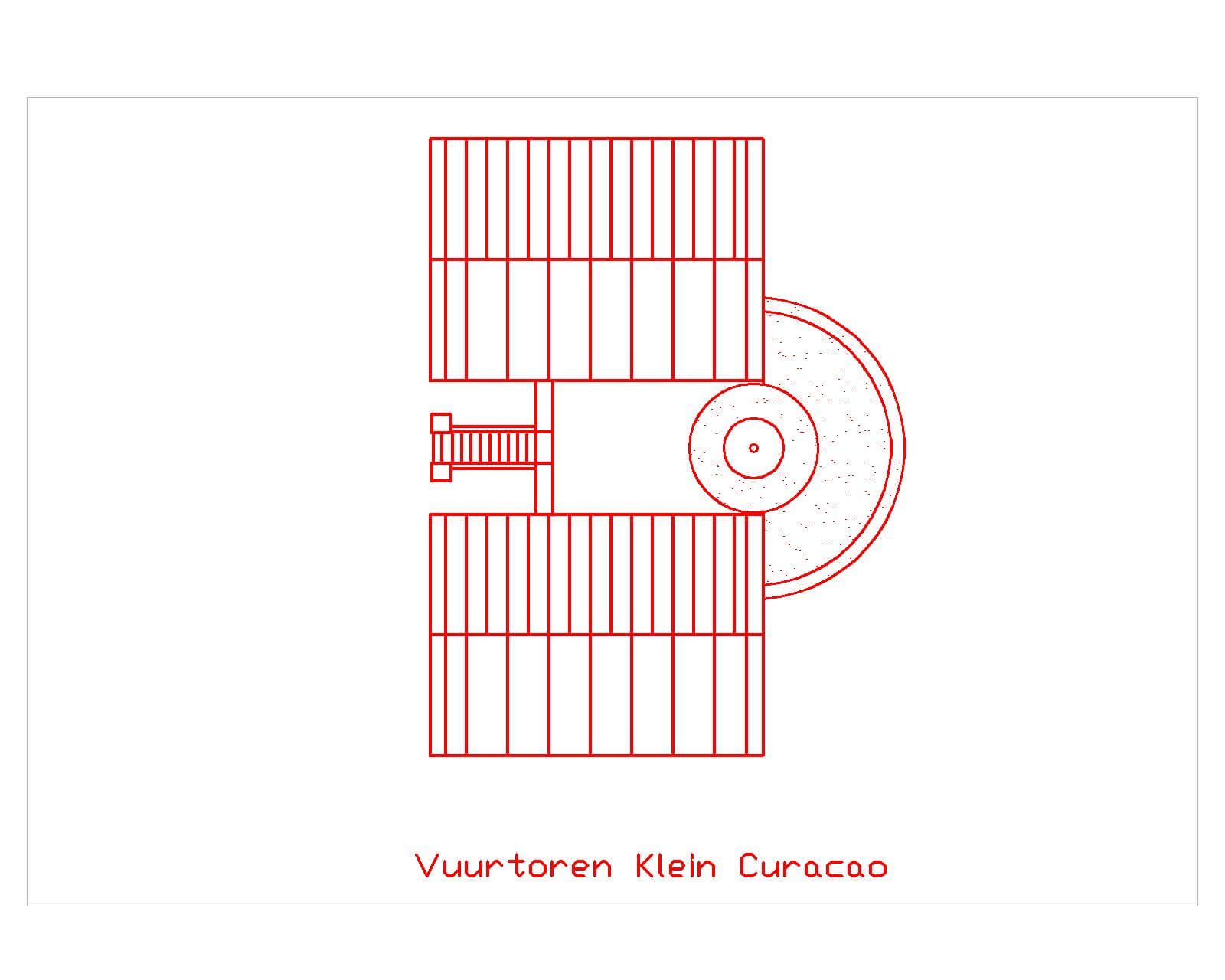 Het ontwerp voor het vuurtoren-complex op Klein Curaçao dateert uit 1877. Behalve de toren waren er twee ruime woningen met elk een slaapkamer, een voorkamer, een keuken, een provisiekamer en een galerij. Op de verdieping van de omgang die op de toren aansluit was nog een kamer en een magazijntje. In basement van de omgang en van de toren is een regenbak. Het basement van de twee dwarsvleugels kon gebruikt worden voor opslag.